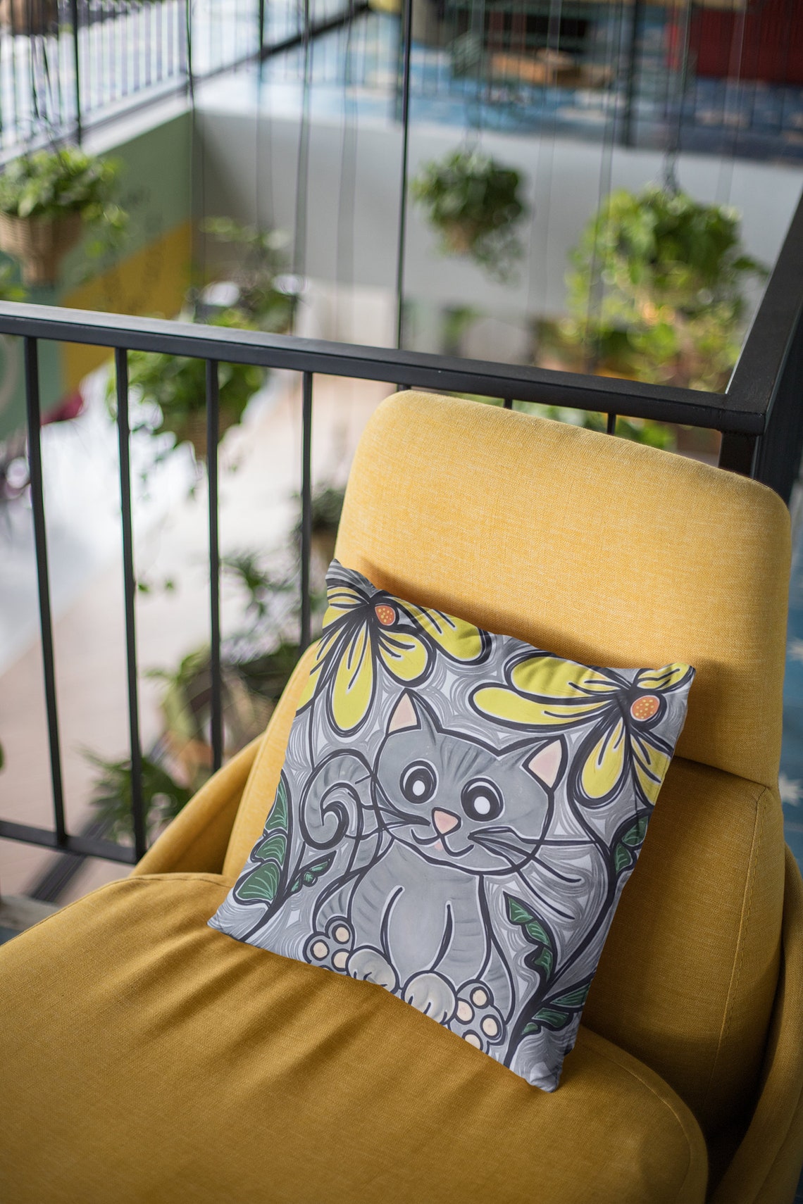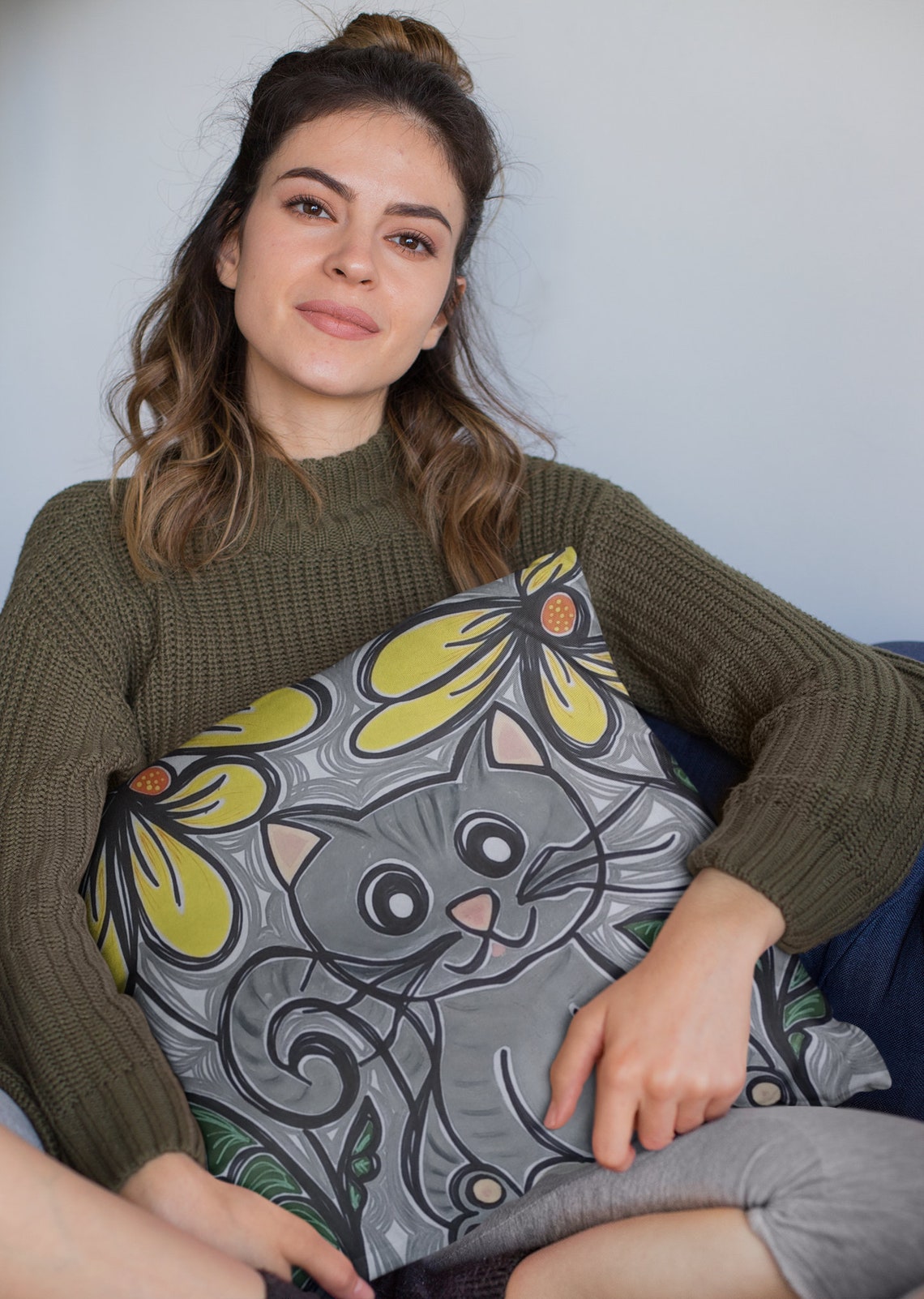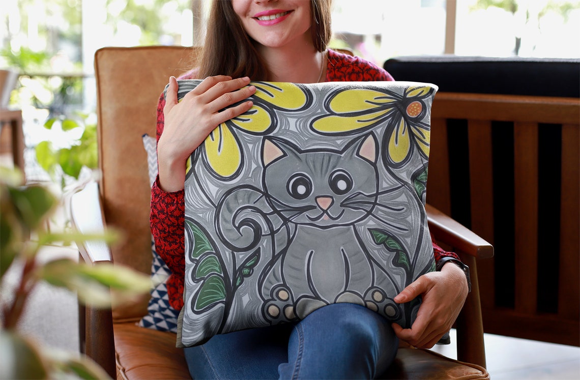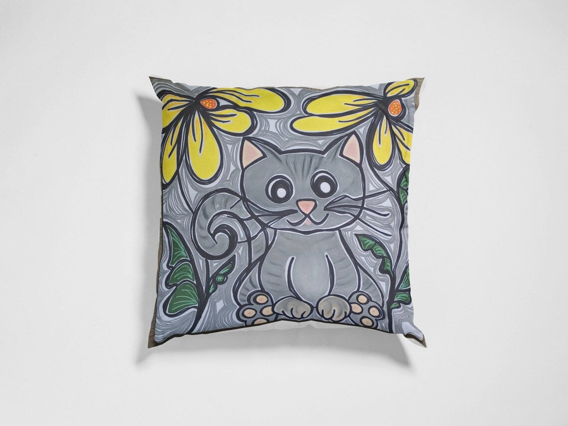 Square Cat Pillowcase Handmade Painted Crafted Cotton Canvas Gifts Home Decor