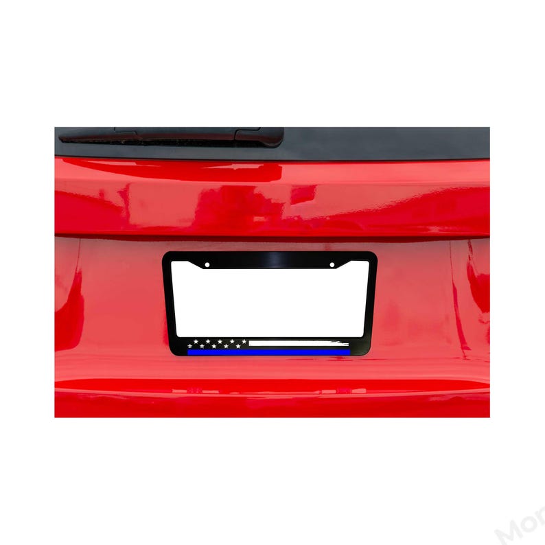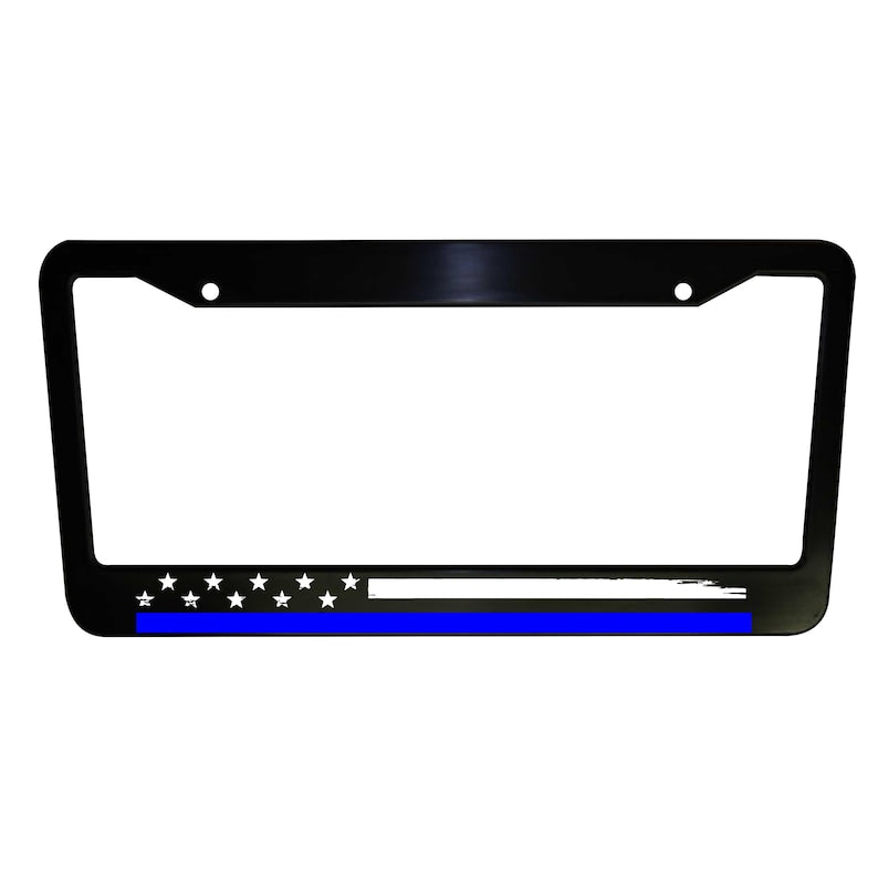 Thin Blue Line Police Car License Plate Frame, Back the Blue Support, Car Decor, Black Plastic, Aluminum, Truck Decor, Car Accessories