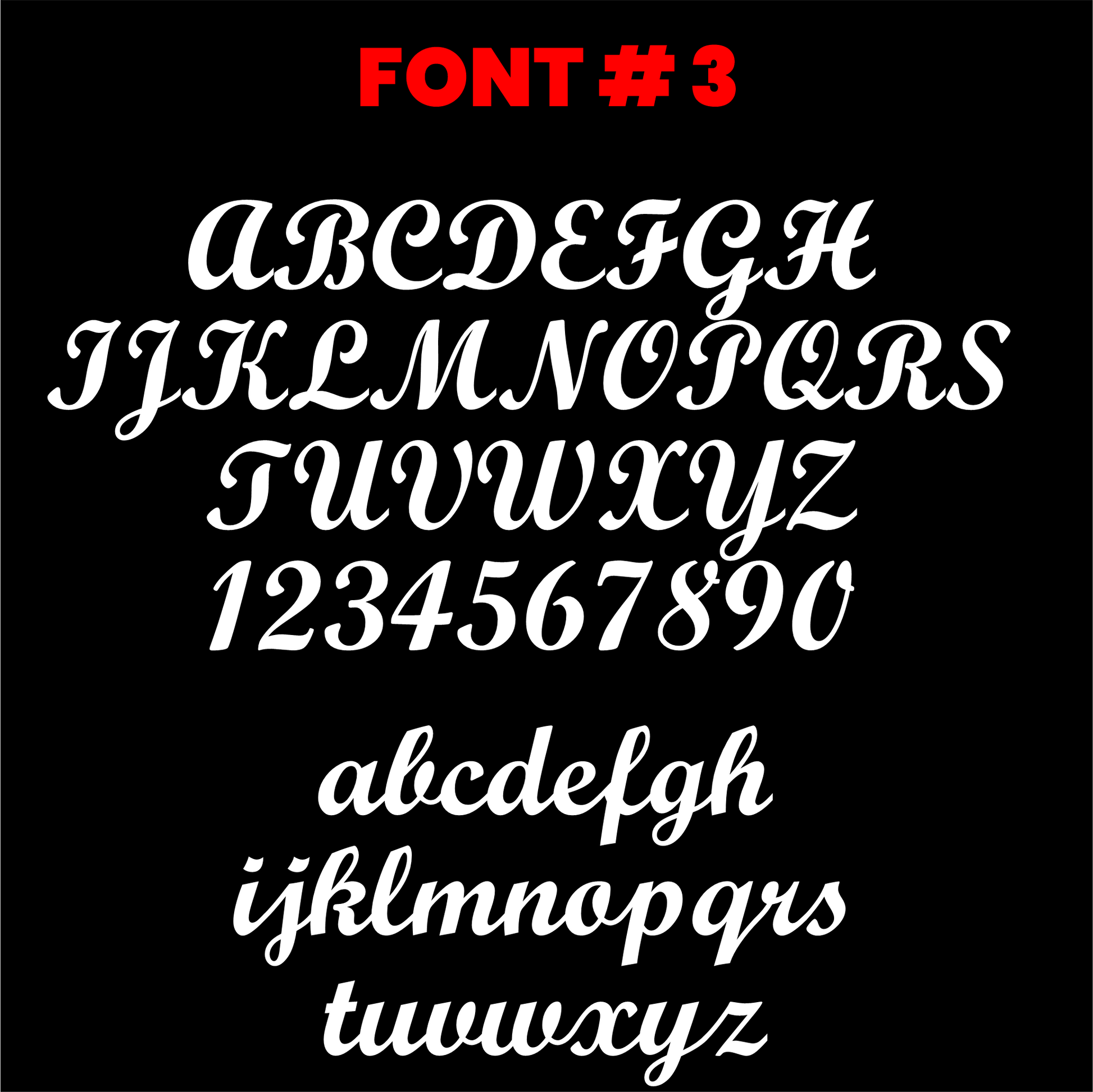 If no font is provided with the order, the decal will be made with default font #3
