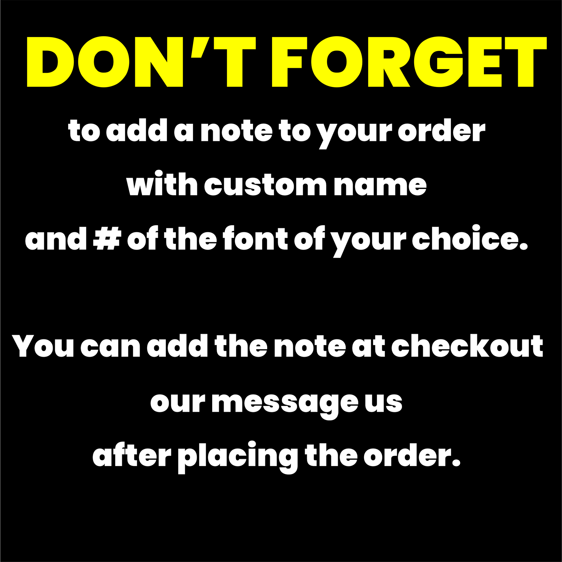 Please add a note to your order with your Name and number of the font of your choice. You can also message us.