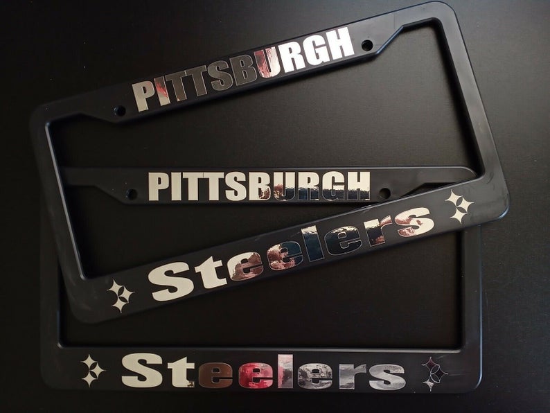 Set of 2 - Pittsburgh Steelers Car License Plate Frames Black Plastic or Aluminum Truck Vehicle Van Décor Car Accessories New Car Gifts Sports Car Parts