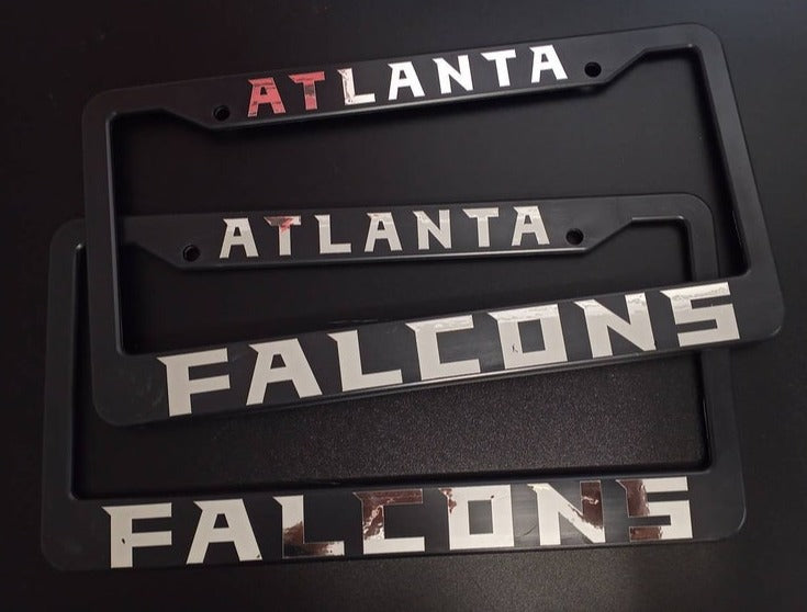 Set of 2 Atlanta Falcons Black Plastic or Aluminum License Plate Frames Truck Car Van Decor Accessories New Vehicle Gifts Holders