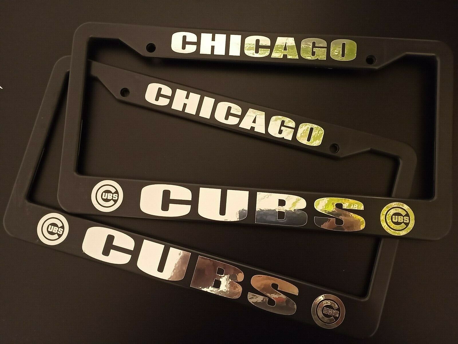 Set of 2 Chicago Cubs Black Plastic or Aluminum License Plate Frames Truck Car Van Decor Accessories Auto Parts