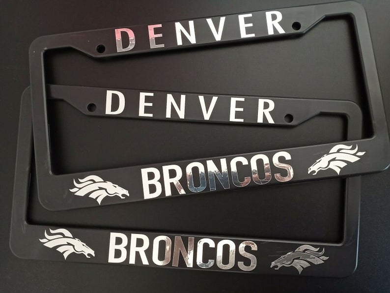 Set of 2 Denver Broncos Black Plastic or Aluminum Car License Plate Frames Black Truck Parts Vehicle Accessories Car Decor
