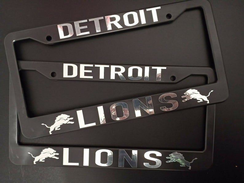 Set of 2 Detroit Lions Plastic or Aluminum Car License Plate Frames Black Truck Parts Vehicle Accessories Car Decor