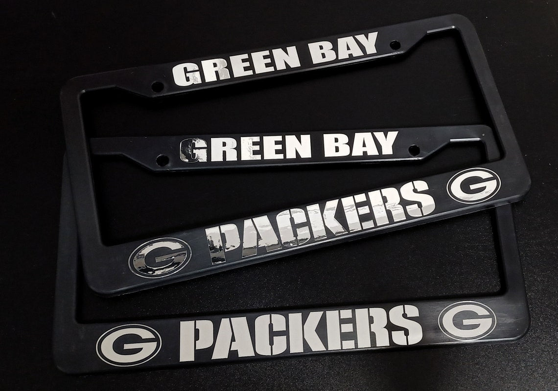 Set of 2 - Green Bay Packers Black Plastic or Aluminum License Plate Frames Truck Car Van Décor Car Accessories New Car Gifts Football Goods