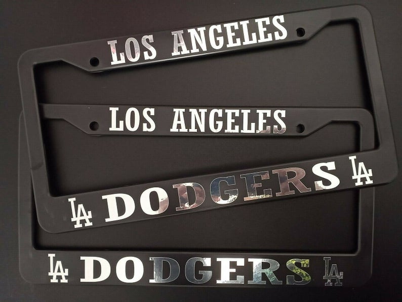 Set of 2 Los Angeles Dodgers Plastic or Aluminum Car License Plate Frames Black Truck Parts Vehicle Accessories Auto Decor