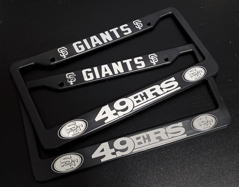 SET of 2 - San Francisco Giants / 49ers Black Plastic or Aluminum License Plate Frames Truck Car Van Décor Accessories New Vehicle Gifts