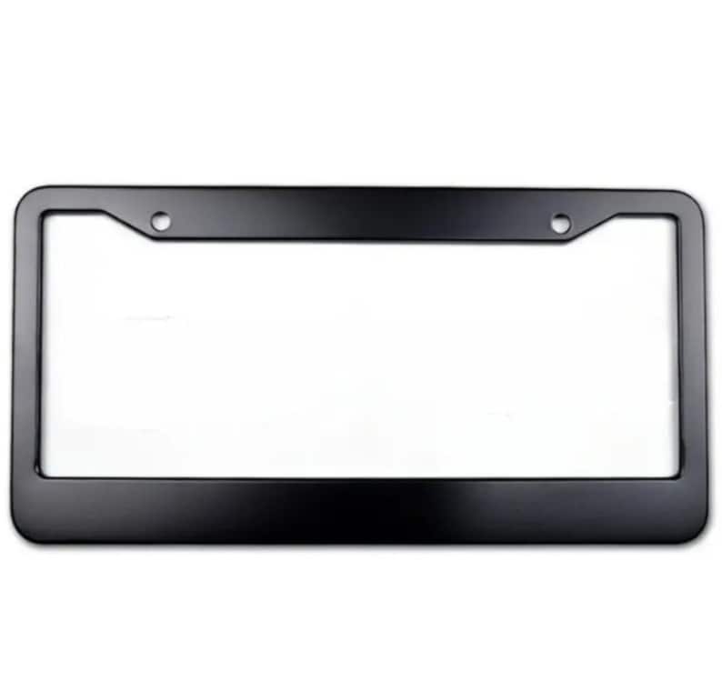 Sturdy license plate holders in black plastic or aluminum (your option) with graphics made of high-quality outdoor permanent vinyl (weather-resistant decal)