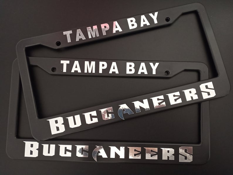 Set of 2 - Tampa Bay Buccaneers Car License Plate Frames Black Plastic or Aluminum Truck Vehicle Van Décor Car Accessories New Car Gifts Sports Car Parts
