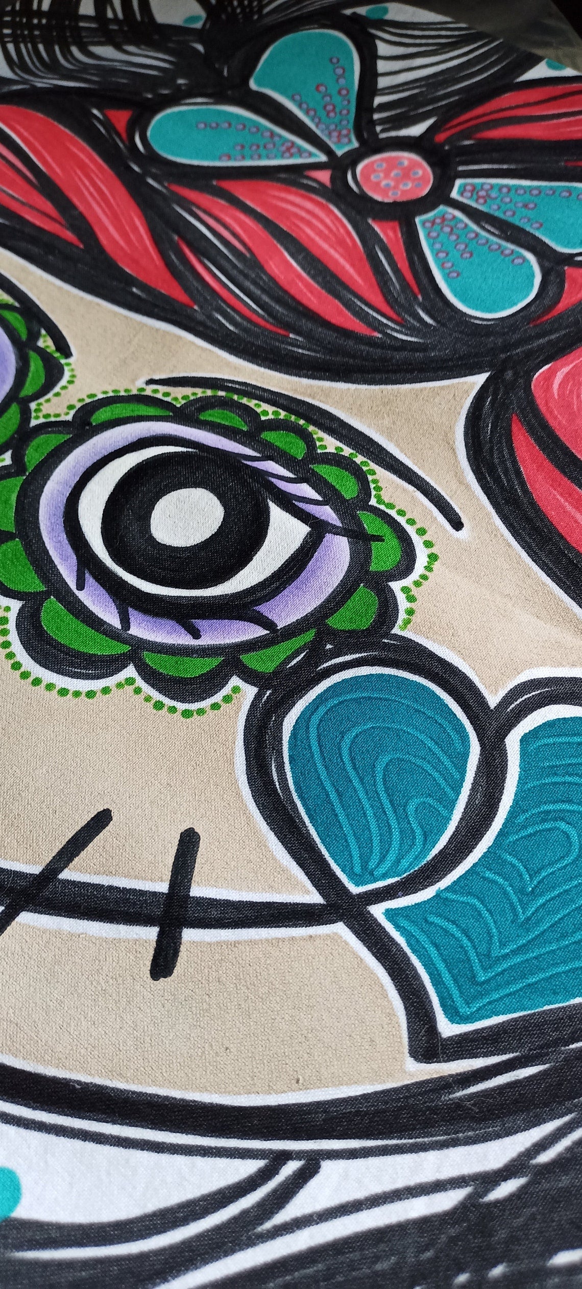 Square Pillowcase Catrina Handmade Painted Crafted Cotton Canvas Gifts Home Decor